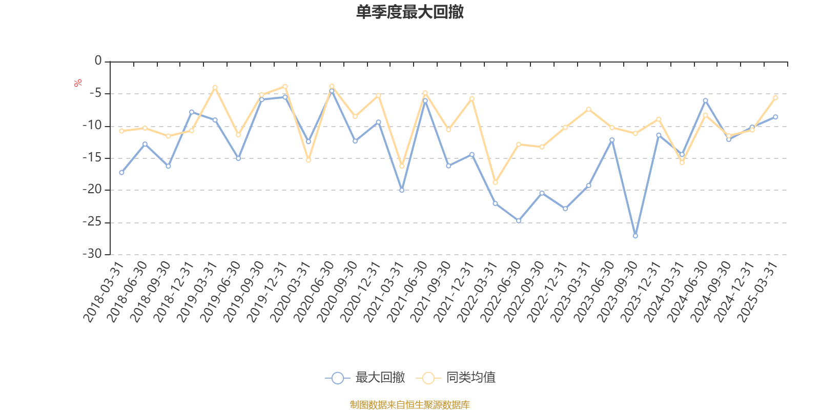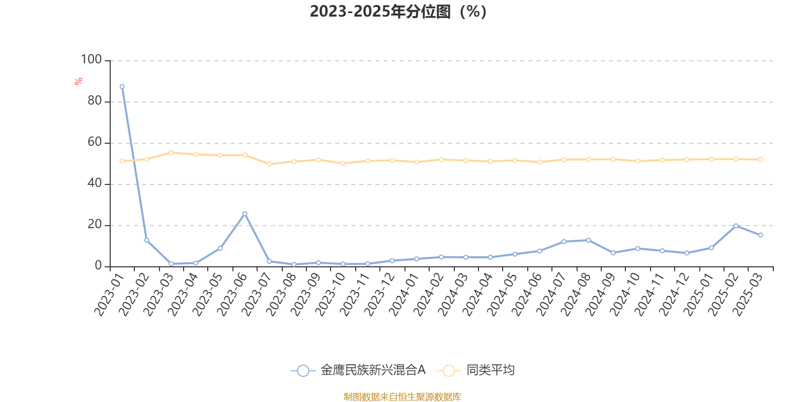 通过所选区间该基金净值增长率分位图,可以观察该基金与同类基金业绩比较情况。图为坐标原点到区间内某时点的净值增长率在同类基金中的分位数。